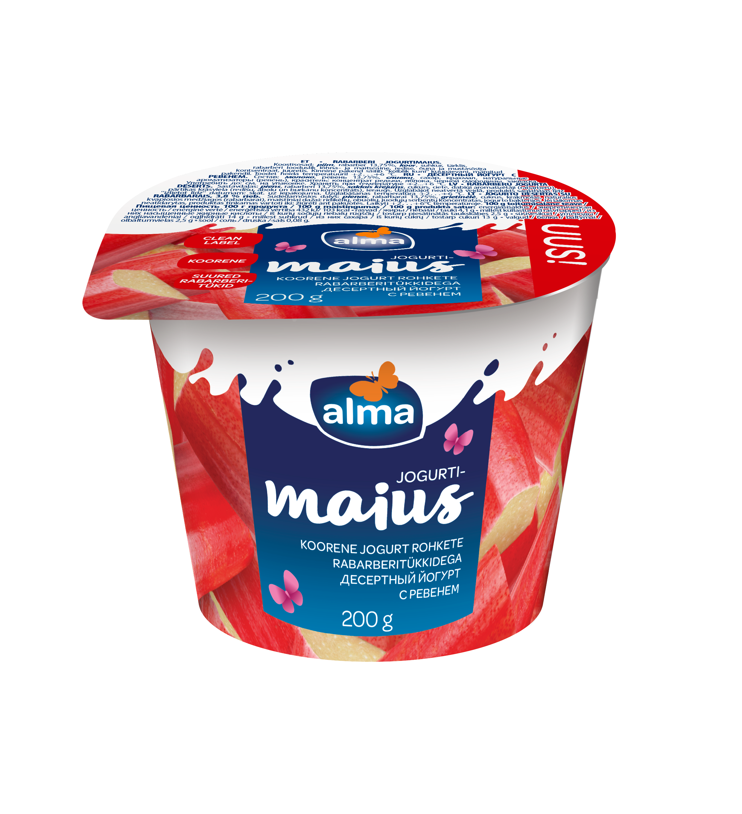 MILK, rhubarb 13,75%, CREAM, sugar, starch, natural flavourings (rhubarb), food colouring (concentrate of radish, apple and black currant), starter culture.