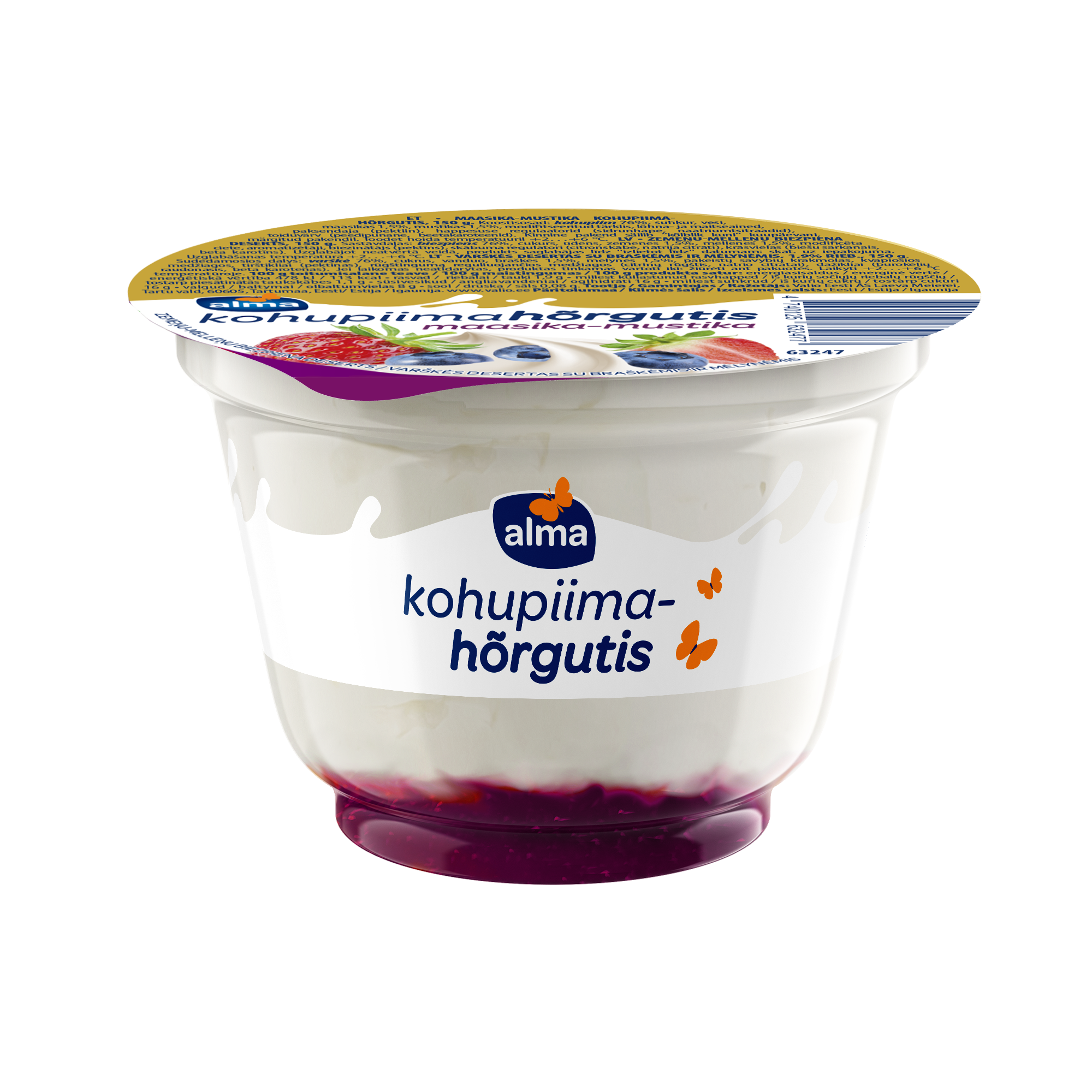 Alma biezpiena deserts ar zemenēm un mellenēm, 150 g