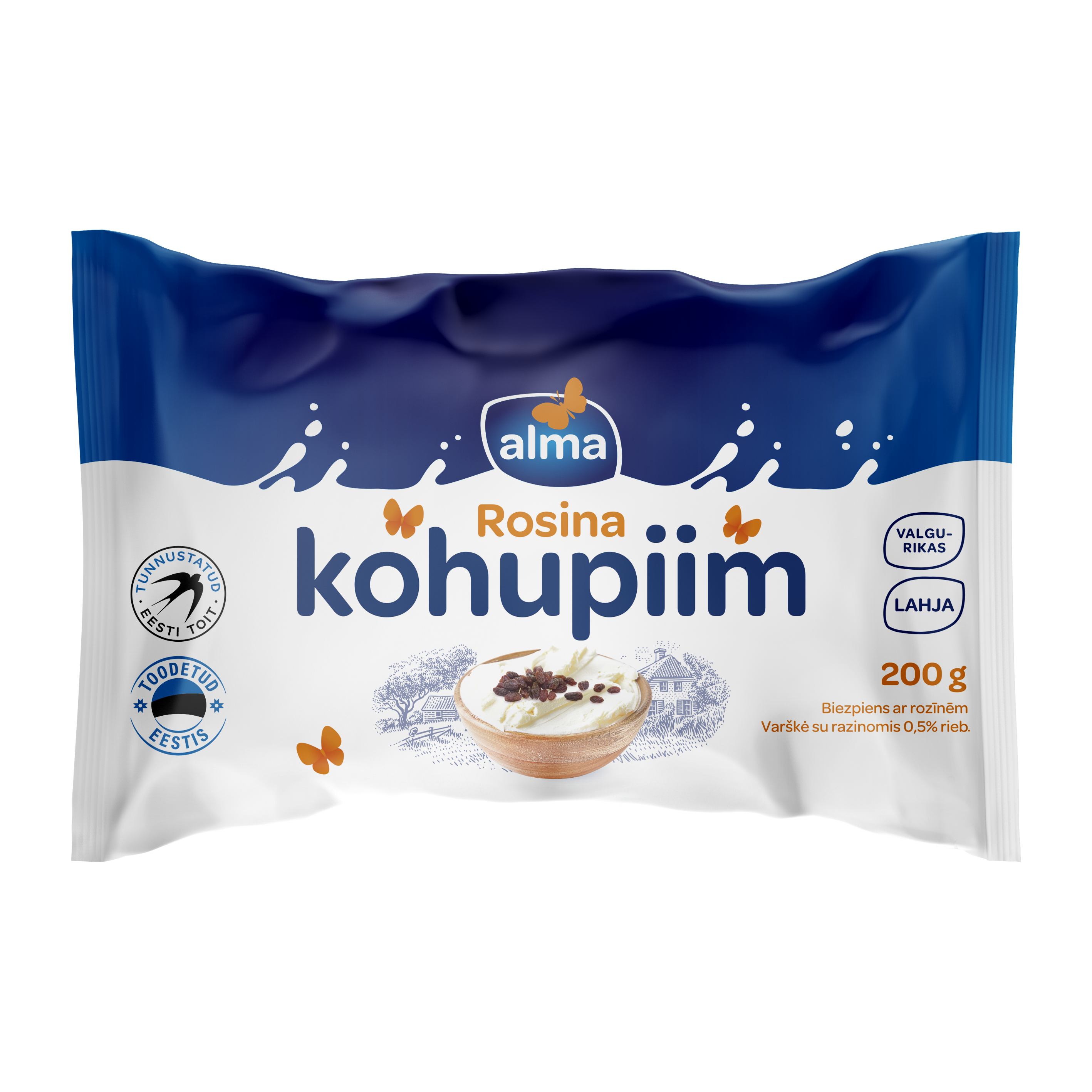 Biezpiens ar Alma kvalitātes zīmi. Olbaltumvielām bagāts biezpiens ar mīkstu, sulīgu tekstūru un rozīnēm, kas ir ideāli piemērots gan gardu kūku, pīrāgu un smalkmaizīšu gatavošanai, gan baudīšanai tīrā veidā. Alma biezpiens, gluži kā Alma biezpiena krēmi, ražots no augstākās kvalitātes piena, nesatur konservantus un ir labs olbaltumvielu avots.