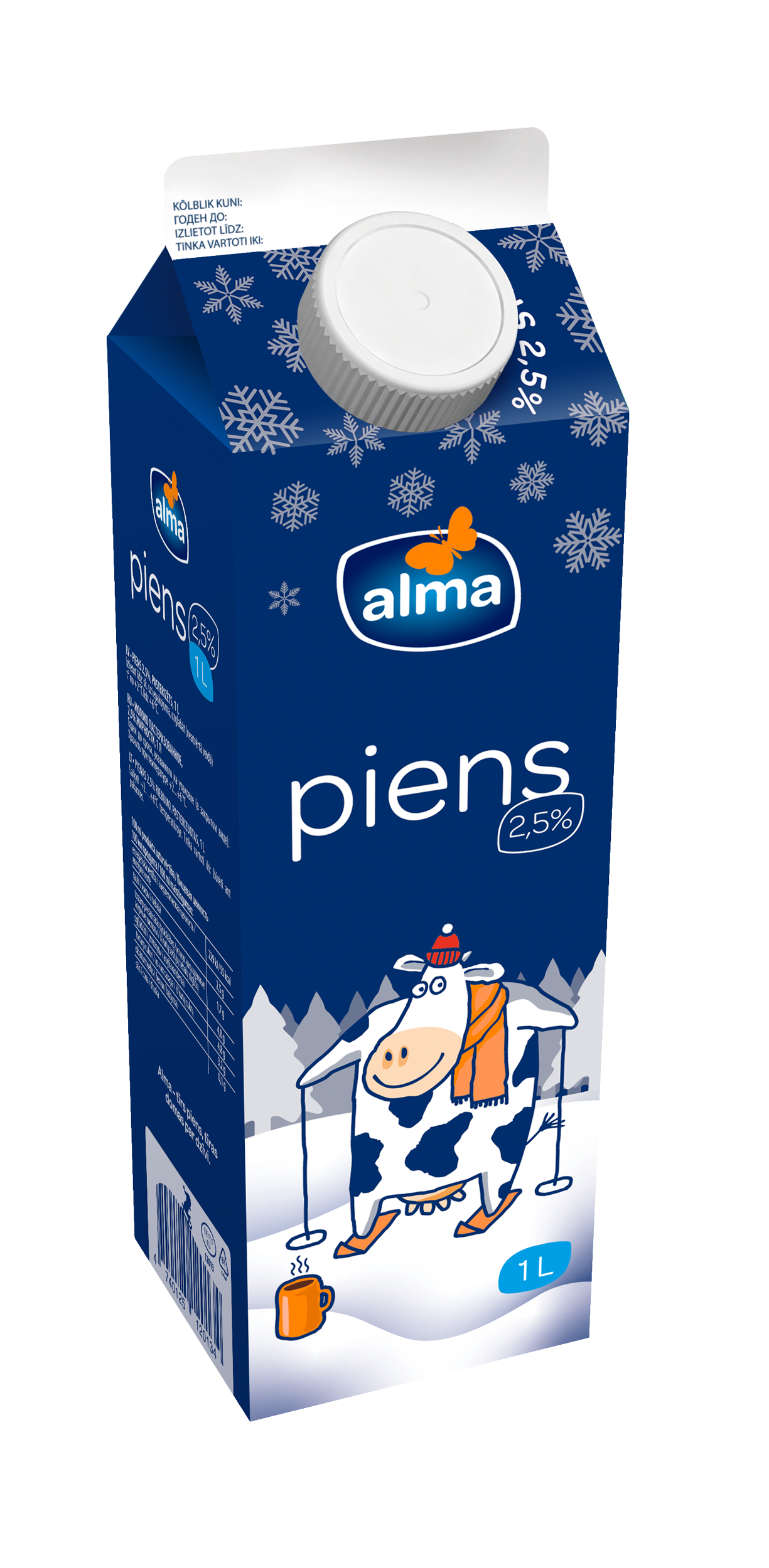Alma piens ar 2,5% tauku saturu. Pateicoties augstajām kvalitātes prasībām un mūsu tik mīļajām govīm, Alma pienam ir svaiga un patīkami krēmīga garša. Piemērots, lai veldzētu slāpes, baudītu pie maltītēm, vai izmantotu kā izejmateriālu iemīļotu ēdienu un gardu kafijas dzērienu pagatavošanai.