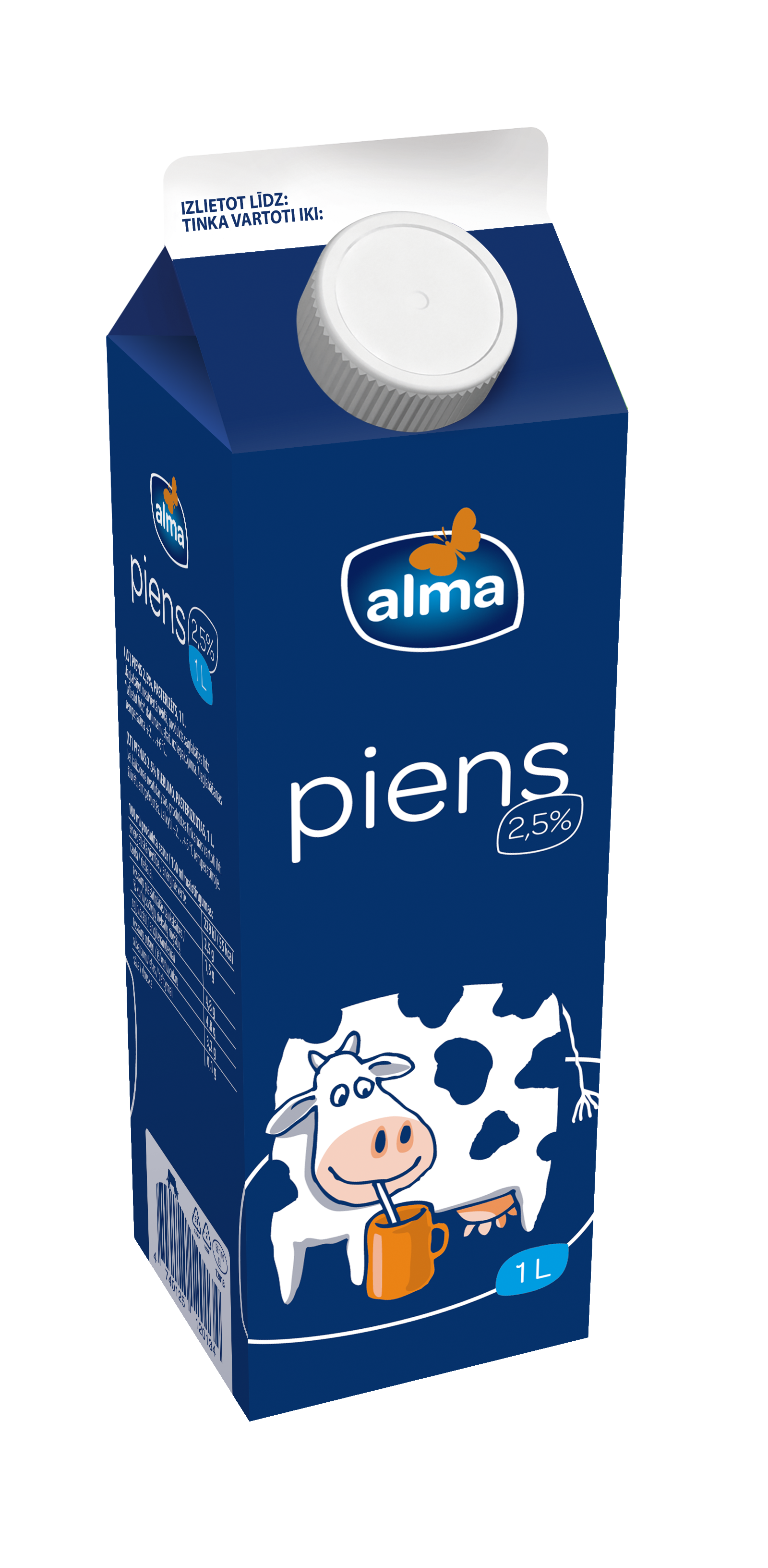 Alma piens ar 2,5% tauku saturu. Pateicoties augstajām kvalitātes prasībām un mūsu tik mīļajām govīm, Alma pienam ir svaiga un patīkami krēmīga garša. Piemērots, lai veldzētu slāpes, baudītu pie maltītēm, vai izmantotu kā izejmateriālu iemīļotu ēdienu un gardu kafijas dzērienu pagatavošanai.