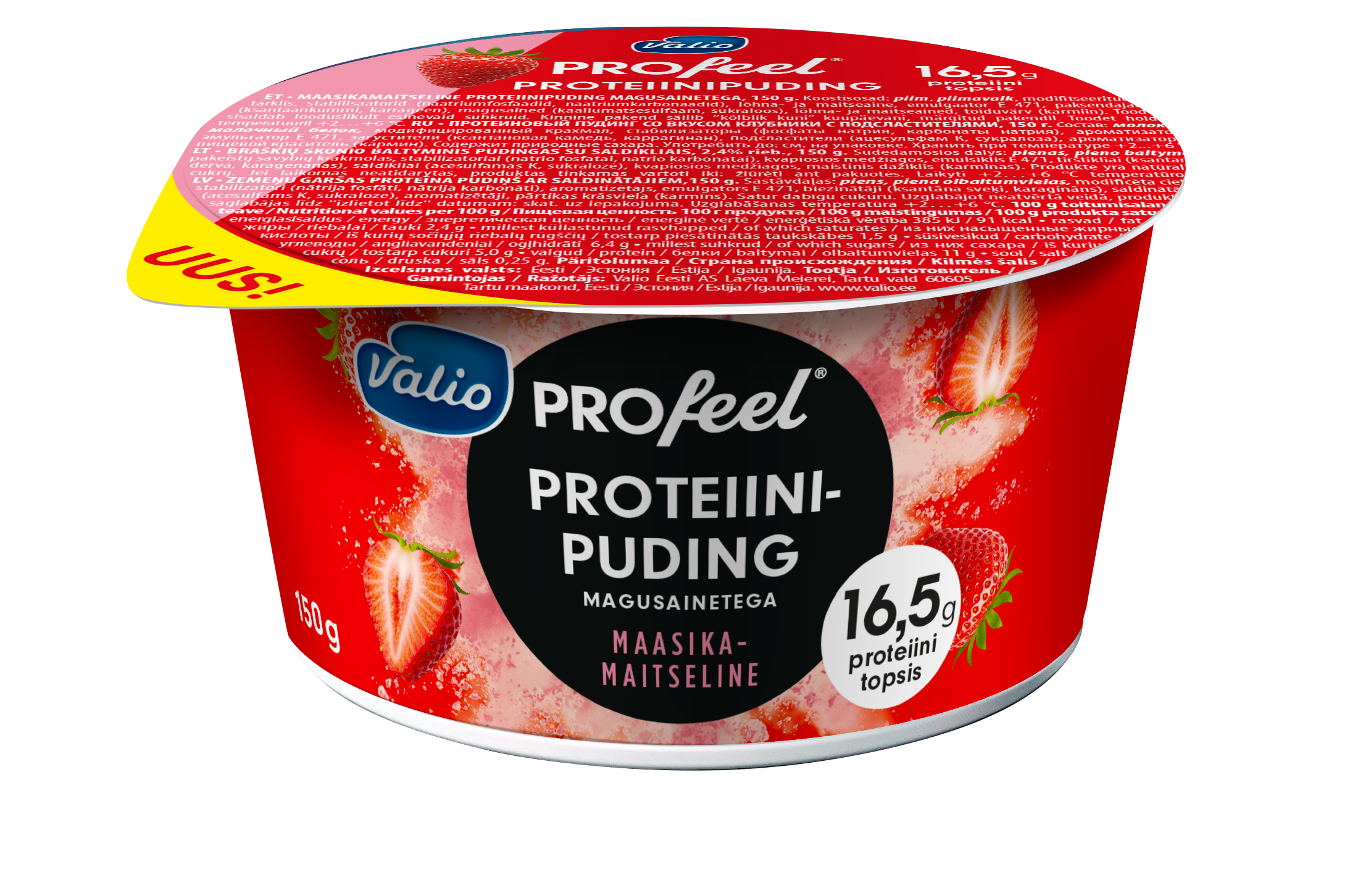Valio PROfeel pudiņš ir deserts, kuru iespējams baudīt bez vainas apziņas. Īpaši zīdainais olbaltumvielām bagātais PROfeel pudiņš (16,5 g olbaltumvielu 150 g glāzītē) nesatur pievienoto cukuru, tādēļ ir ideāla uzkoda cilvēkiem, kuri piekopj aktīvu dzīvesveidu.